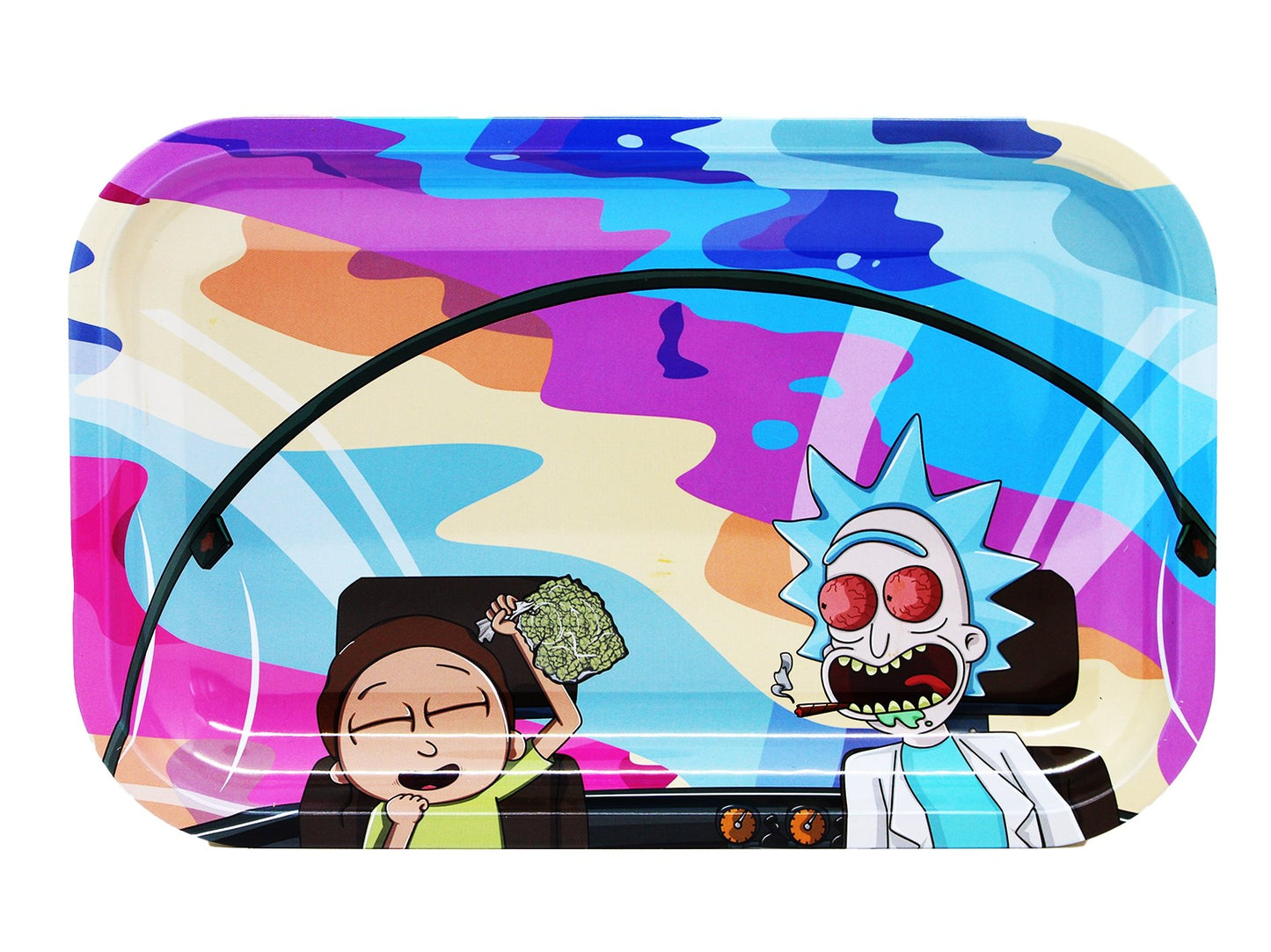 Elevate your smoking experience with the "Lost In The Sauce" rolling tray from Smoke Arsenal. Featuring a vibrant Rick and Morty design, this tray is perfect for fans of the show and adds a fun, unique touch to your sessions. Crafted from premium metal, it boasts a sleek and durable construction that is easy to clean and highly portable for use wherever you go.