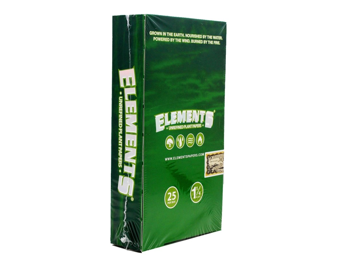Elements 1 1/4 Unrefined Plant Rolling Papers (Green) are made from pure plant fibres. Elements 1 1/4 Rolling Papers burn smoothly producing no ash except the caramel created as the sugar gum burns, this is the result of using a criss-cross watermark. Each pack contains 50 Papers of pure pleasure.