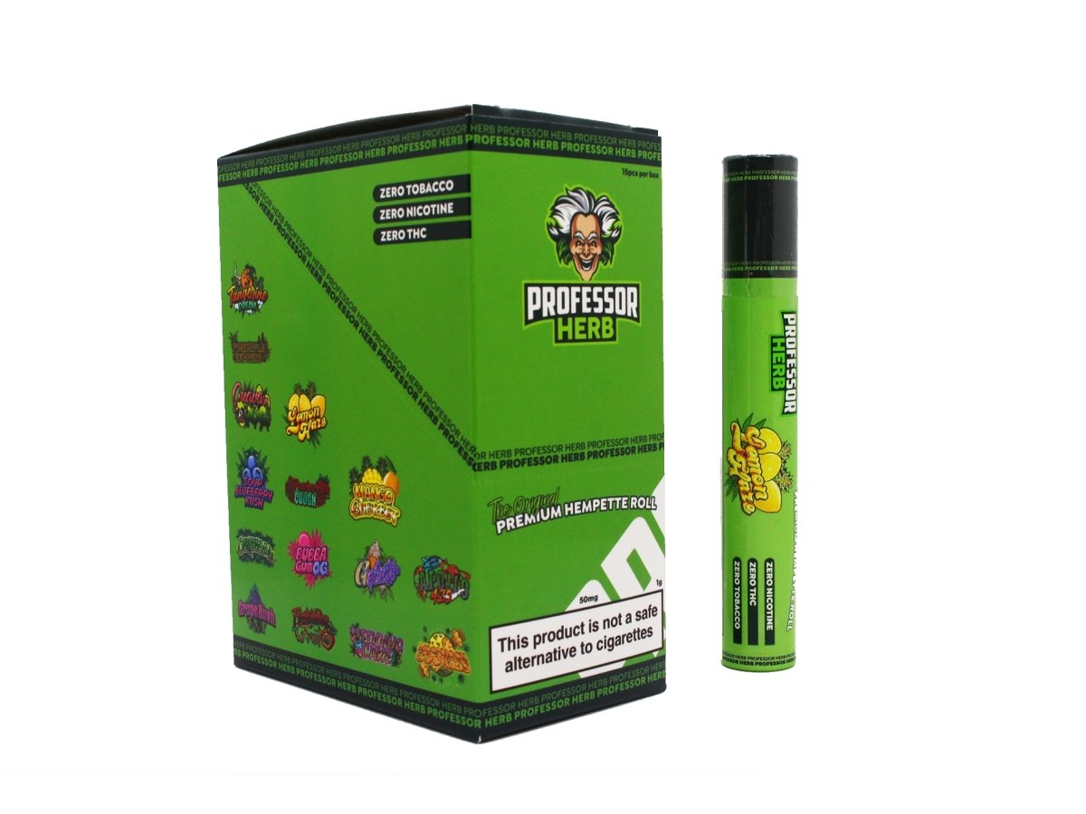 View full detailsPROFESSOR HERB CBD Pre-Rolls 15 Per Box The Professor Herb CBD Hemp Pre Rolls are manufactured using the finest Italian-grown, EU-approved industri...