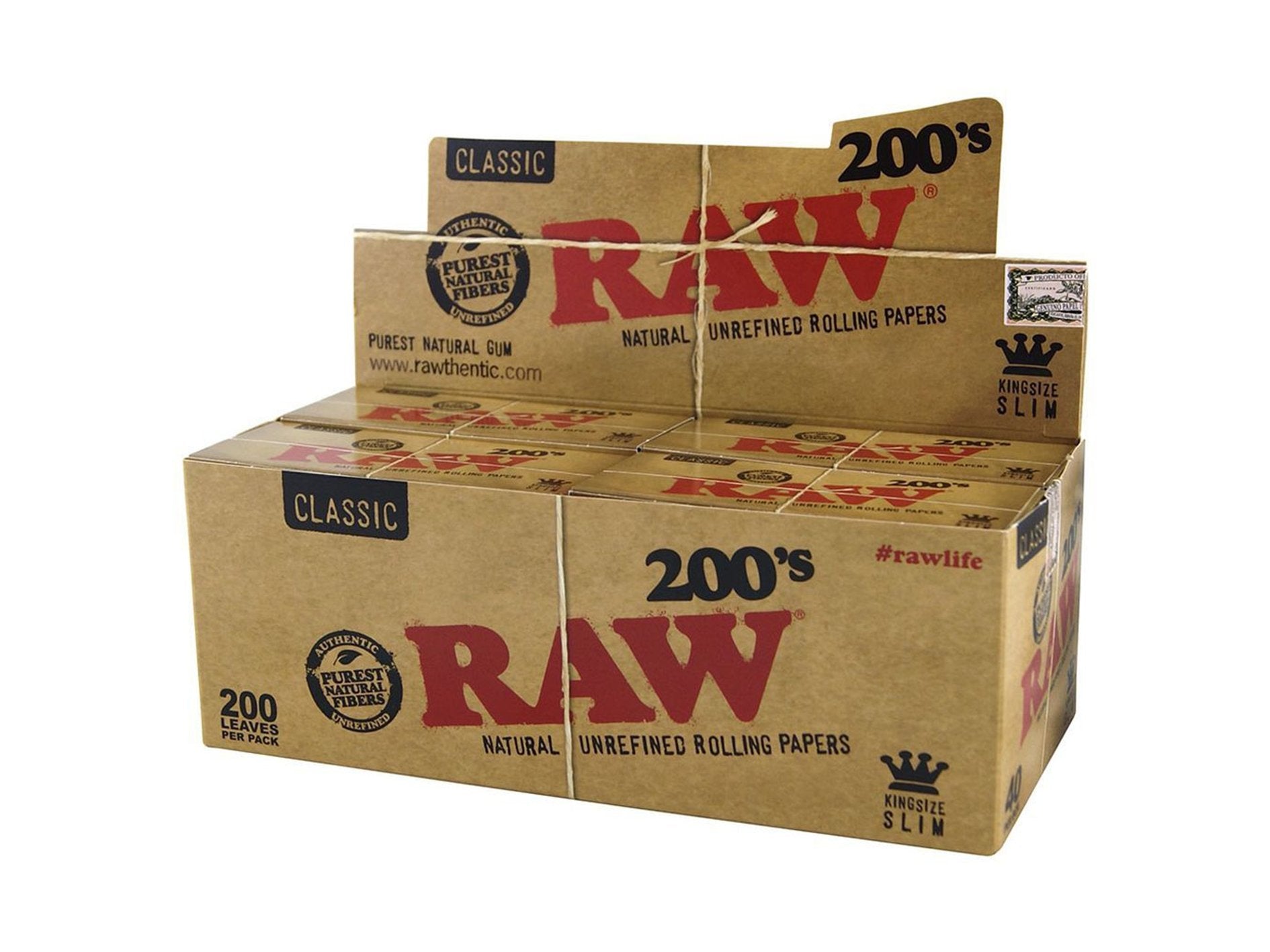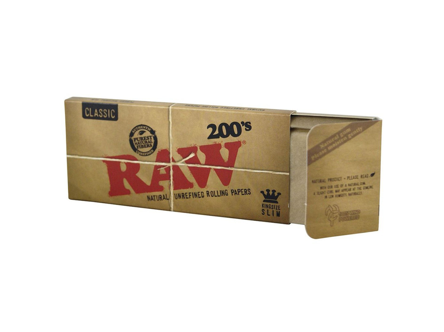 Raw: Classic Creaseless King Size Slim papers (200’s) contain a blend of unbleached plant fibres and are finished with our truly natural tree sap gum line. Each sheet is watermarked with our proprietary criss-cross imprint which helps prevent runs and maintains the smoothest burn. Because RAW Classic Creaseless Paper is a naturally unrefined paper that uses a truly natural tree-sap gum, a slight curl may appear at the gum line in low humidity. Simply exhale on the gum line while holding the paper taught to remedy.