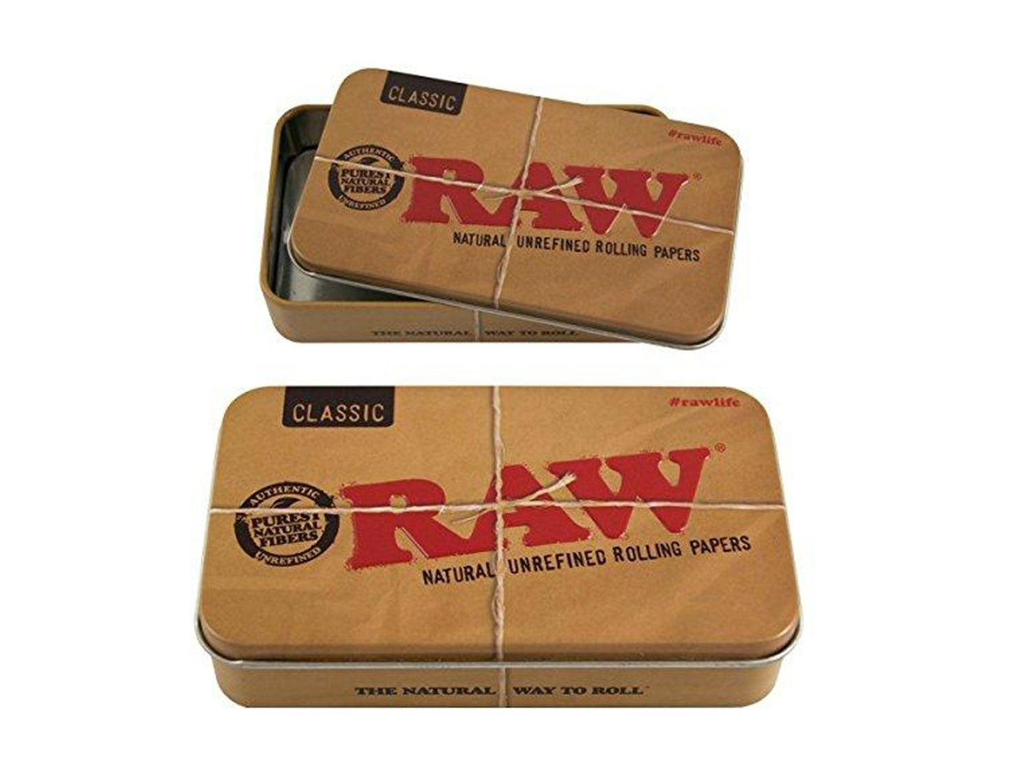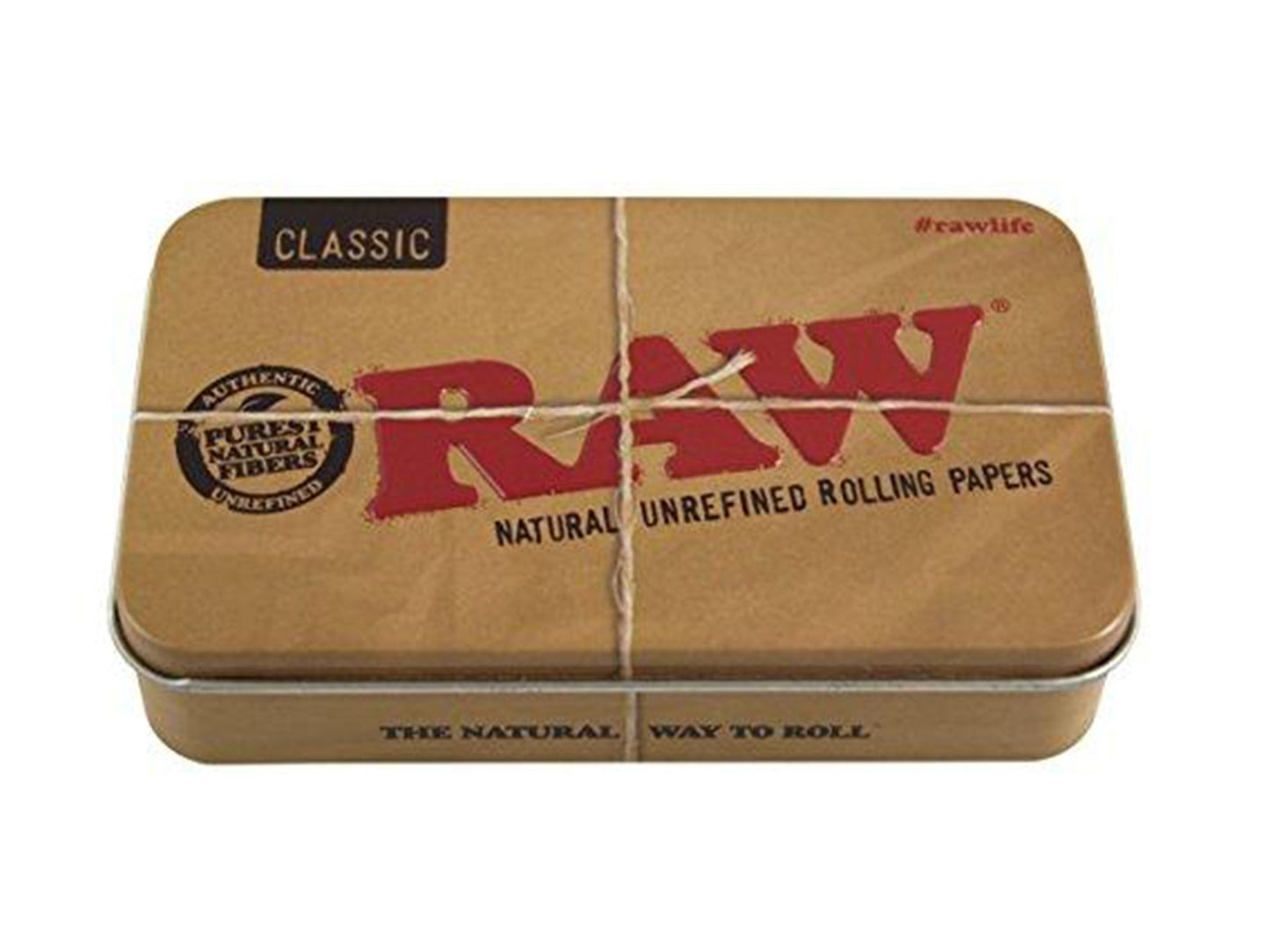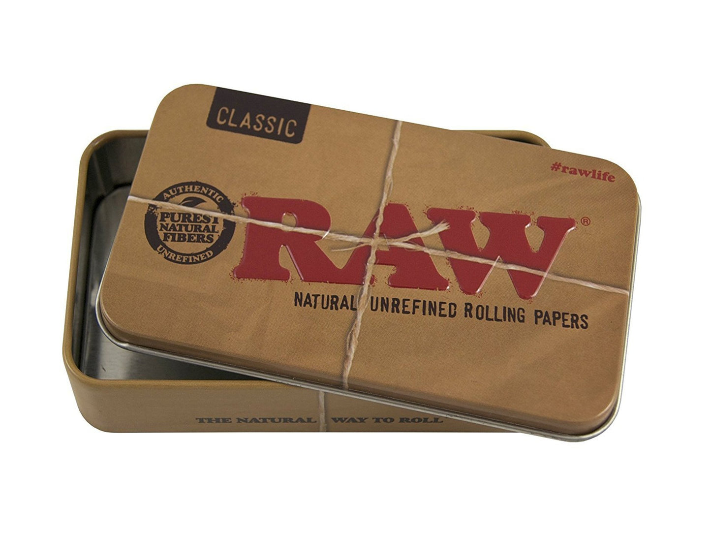 Fully printed on the outside in the Raw Classic Design. The Raw logo is embossed in the lid. Big enough to hold all your essentials including King Size Slim papers Another handy bit of kit from Raw.