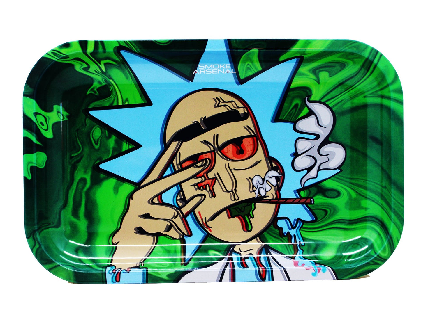 Enhance your smoking sessions with the Rick Dankchez rolling tray from Smoke Arsenal. This medium-sized tray features a vibrant design inspired by the animated series "Rick and Morty," adding a playful touch to your collection. Crafted from premium metal, it ensures durability and easy maintenance, making it ideal for both home and on-the-go use.